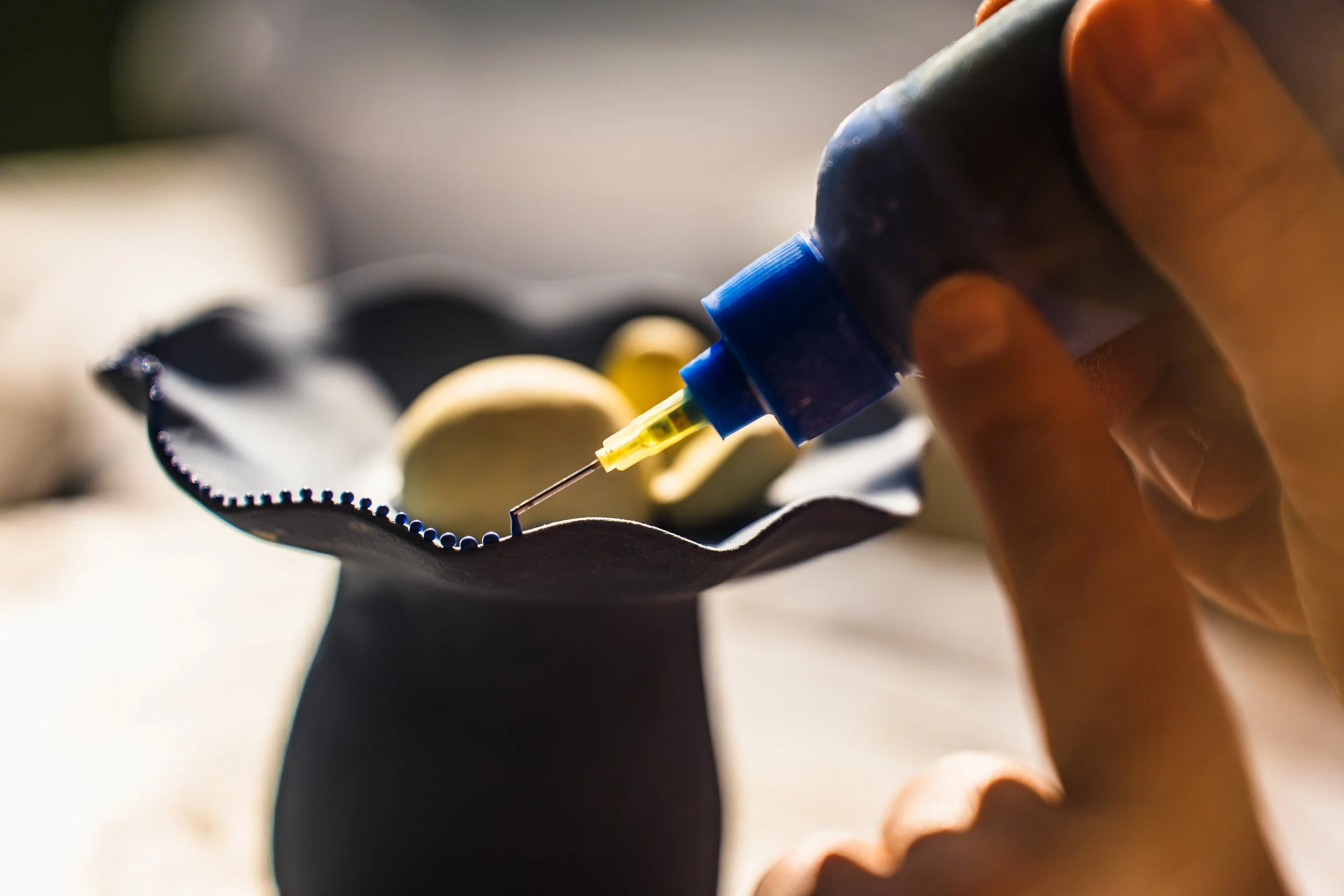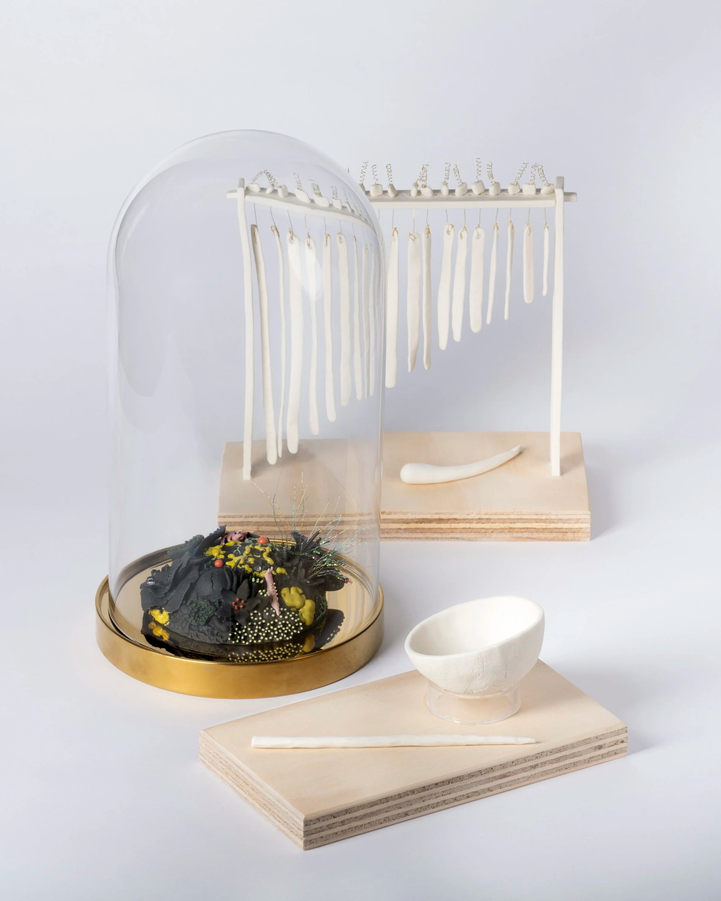 My making resists this fracture by leaning into attention. I spend time learning from and observing these organisms in the natural world, returning to them repeatedly. In the studio, this felt knowledge is translated slowly through hand-building — working closely with materials, participating in the careful translation of patterns and processes from more-than-human systems into clay and thread.
