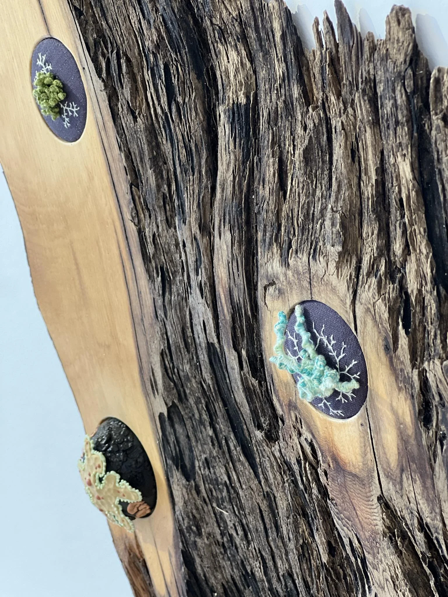 Working across porcelain and textile, I am conscious that every material carries ecological weight — clay, glaze minerals, water, electricity, fabric, thread, timber substrates, and found elements. I do not claim purity within contemporary systems, but I aim to practice with attention and restraint.
